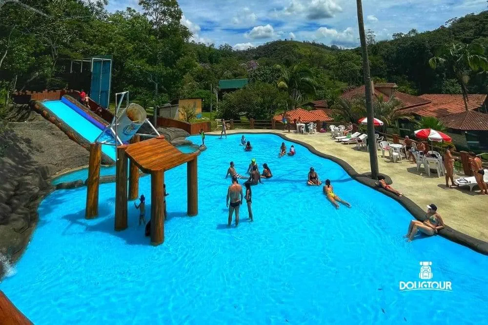 Com piscinas de pedras naturais, toboáguas e um lago para atividades aquáticas, a diversão é garantida para todas as idades. Este é o cenário perfeito para recarregar as energias e viver um dia diferente.